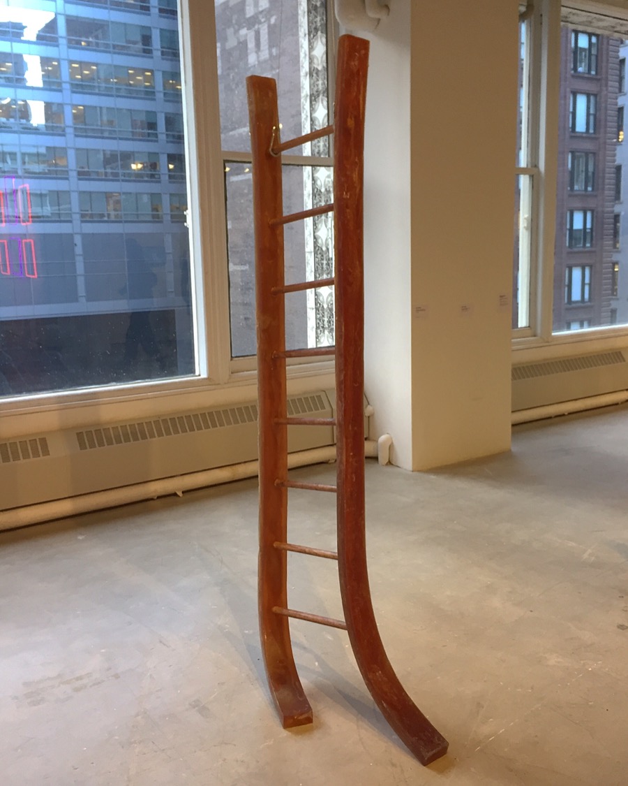 The ladder is an object of one function. If it is physically unable to uphold its intended function then there is reason to question its objecthood. The material shift achieved through urethane rubber reveals its vulnerability. Once the form loses confidence through materiality it fails to perform its supposed duty. Only evident through its title, the ladder is likened to the philosophy of the human condition and our flexible perseverance in the face of existential stressors.